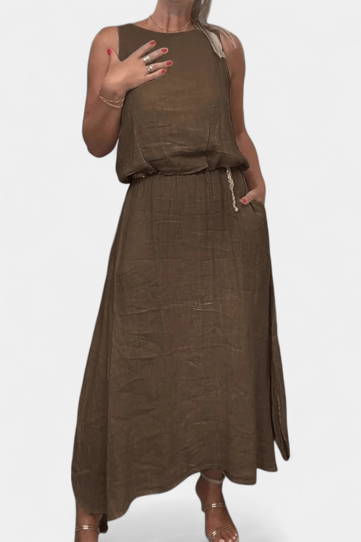 Meliora | Conjunto emana uma elegância intemporal e um luxo discreto que fala ao valor duradouro. O conjunto une a essência do verão numa silhueta descontraída, mas sofisticada, composta por um colete solto sem mangas e uma saia longa drapeada com bolsos laterais. O tecido de linho e algodão respira e desenvolve um brilho natural ao longo do tempo, enquanto o artesanato e a origem refletem-se claramente em cada detalhe. A produção é realizada em pequenas quantidades com precisão e cuidado, o que sublinha a exclusividade e a durabilidade do conjunto. Meliora | Conjunto oferece um visual de verão intemporal com valor duradouro e valor de colecionador—ideal para praia, cidade e eventos sociais, e fácil de combinar para um estilo sofisticado e estético. O conjunto 'Meliora | Conjunto' é, portanto, não apenas uma peça de vestuário, mas um investimento em artesanato intemporal que proporciona prazer estação após estação.