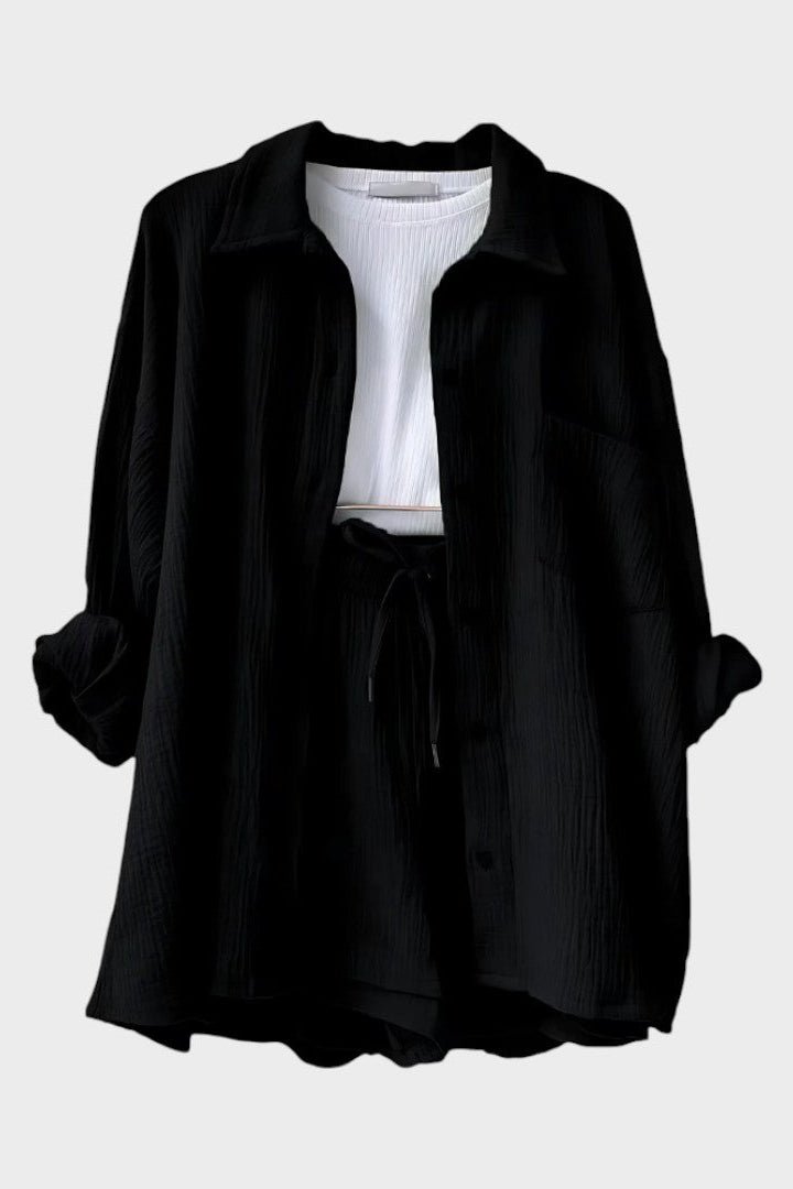 Astrid | Conjunto de Verão representa uma assinatura intemporal da nossa coleção. Este conjunto leve é composto por uma camisa leve e calções combináveis, desenhados para dias quentes, onde a respirabilidade e o conforto estão em primeiro plano. O artesanato reflete herança e proveniência através de cortes limpos, costuras precisas e detalhes subtis. Com uma produção limitada, é mais do que roupa – é um investimento em valor duradouro e uma sensação de prestígio no guarda-roupa de verão.