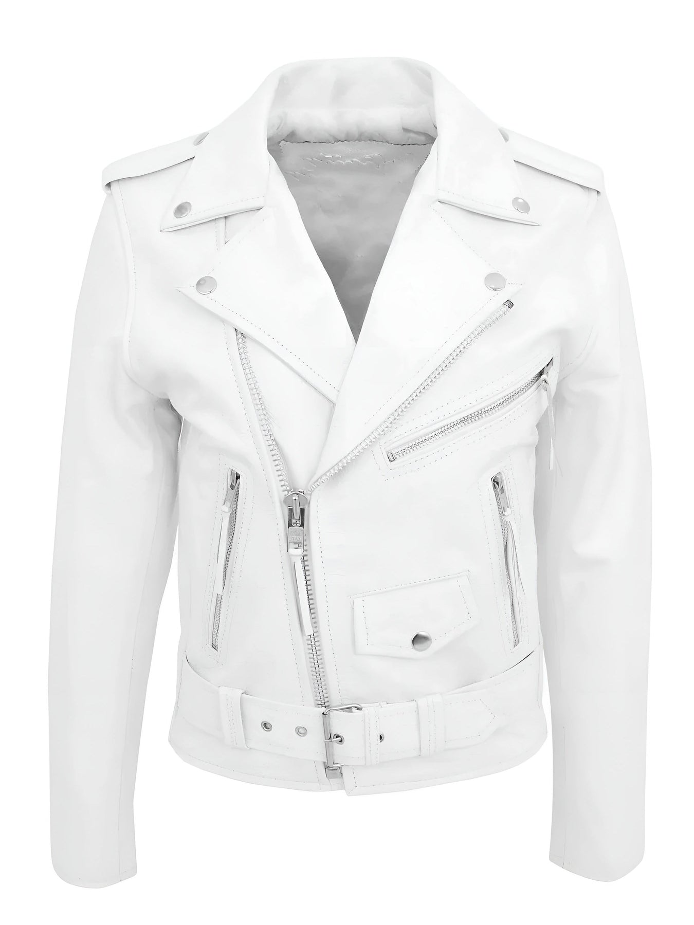 Design icónico de biker – fechos de correr, cinto e detalhes que conferem uma expressão poderosa