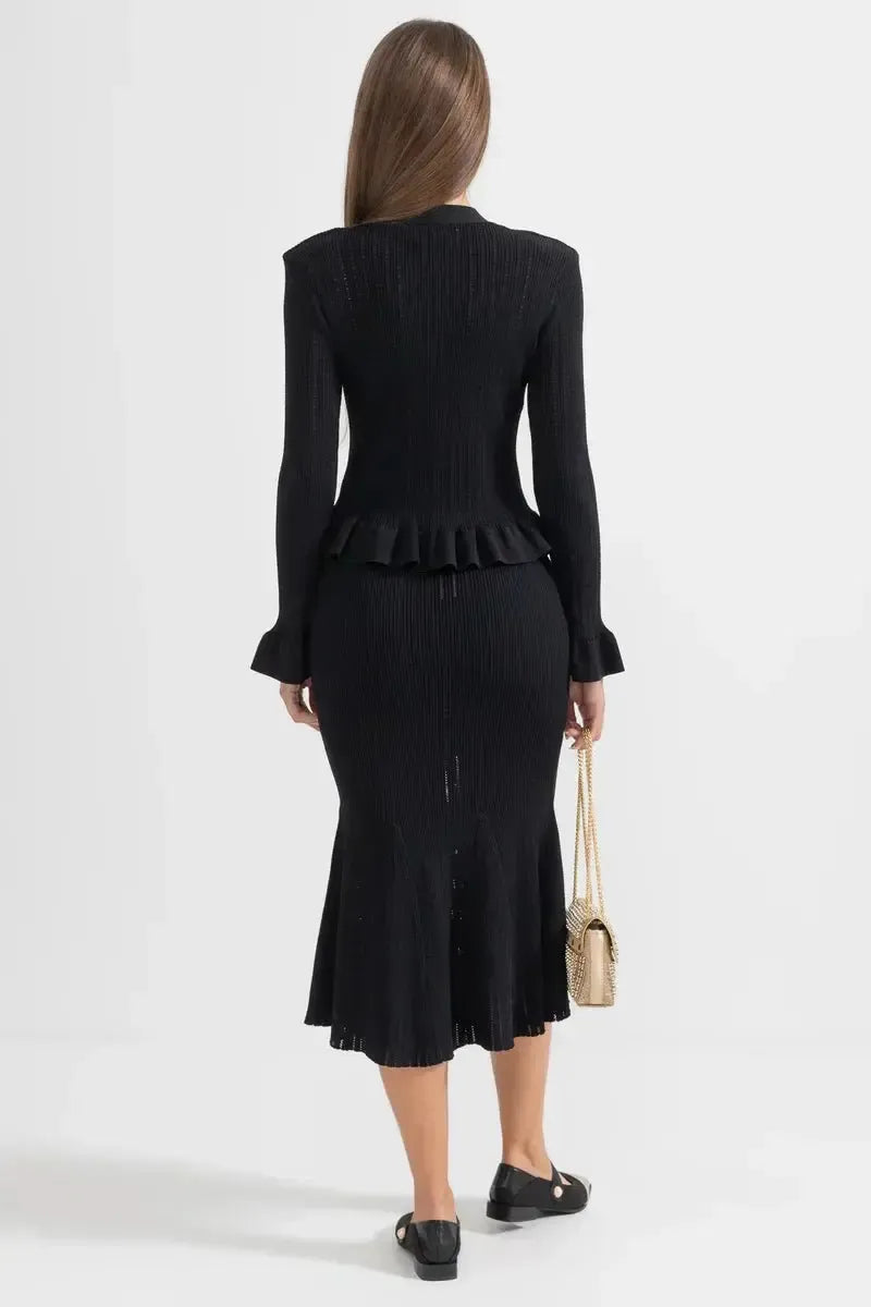 Prudence | Conjunto irradia elegância intemporal e o orgulho da herança da marca em cada costura. O conjunto é composto por um cardigan ajustado com decote em V, com delicadas pregas nas mangas e botões de inspiração vintage, juntamente com uma saia midi A-line de cintura alta, tudo feito em fio de primeira qualidade e com costura meticulosa. A construção suave e respirável proporciona conforto durante todo o dia, enquanto os detalhes bem pensados e o corte elegante garantem uma silhueta sofisticada que transita facilmente entre o casual e o formal. Com disponibilidade limitada, o Prudence | Conjunto oferece um verdadeiro apelo de colecionador e um investimento intemporal no guarda-roupa que perdura ano após ano. A cintura alta e o corte A-line criam uma silhueta intemporal e lisonjeira que se mantém ano após ano.
